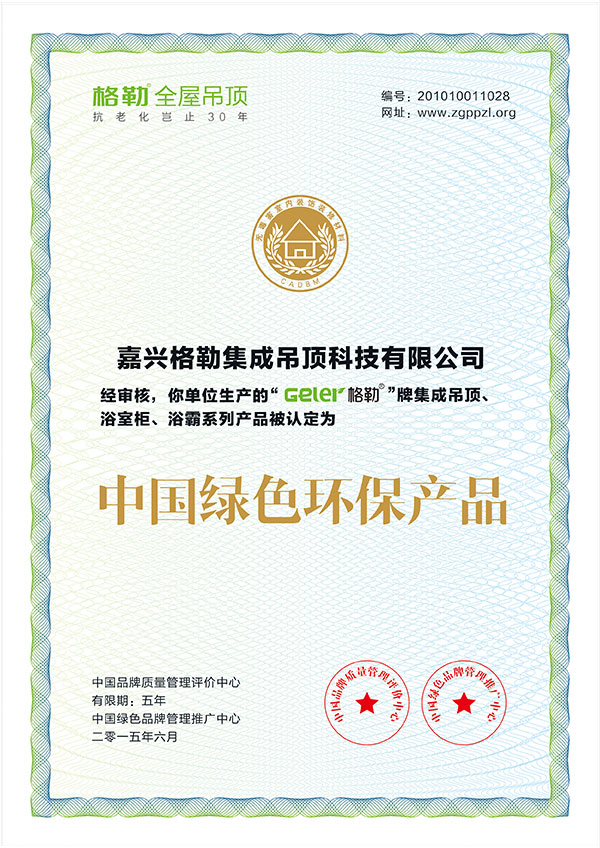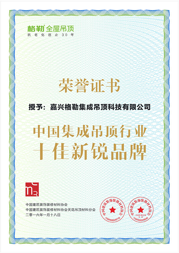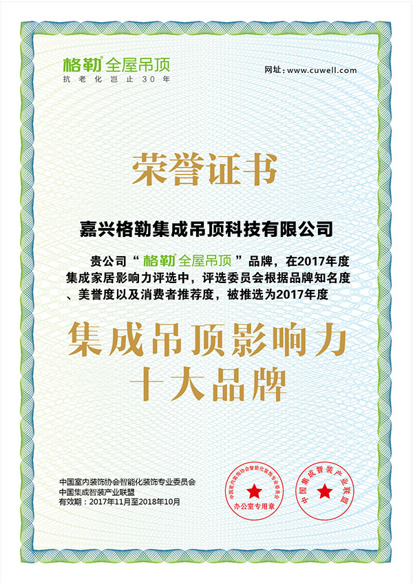 6月被授予“互联网吊顶第一品牌”;被授予“中国绿色环保产品”;