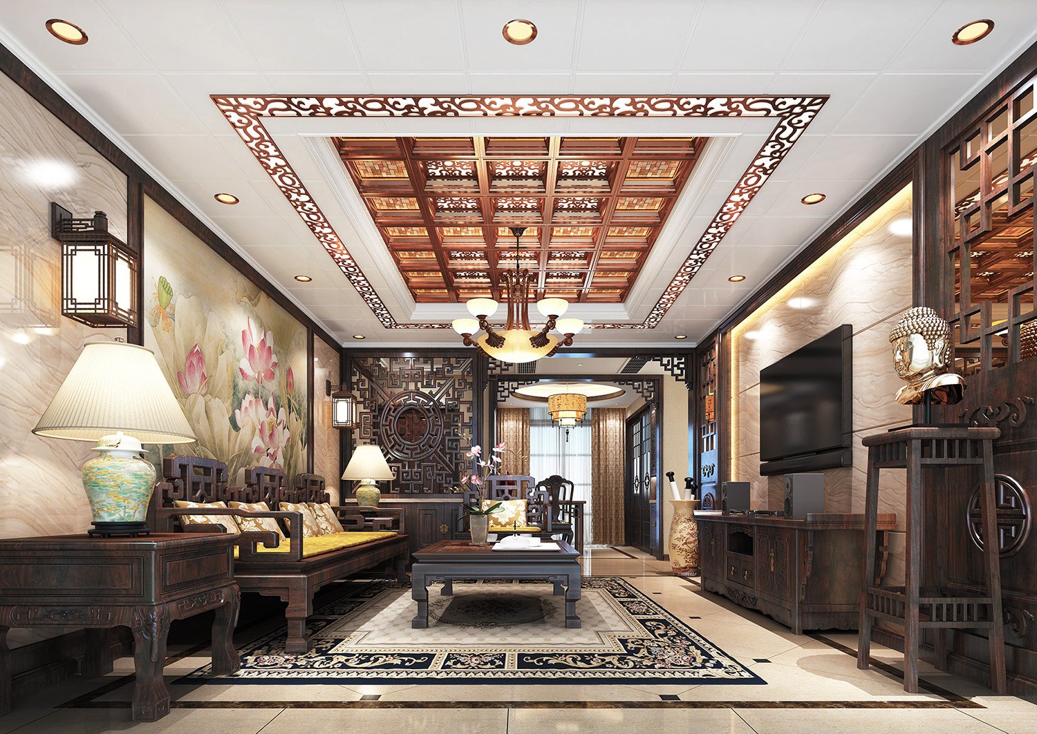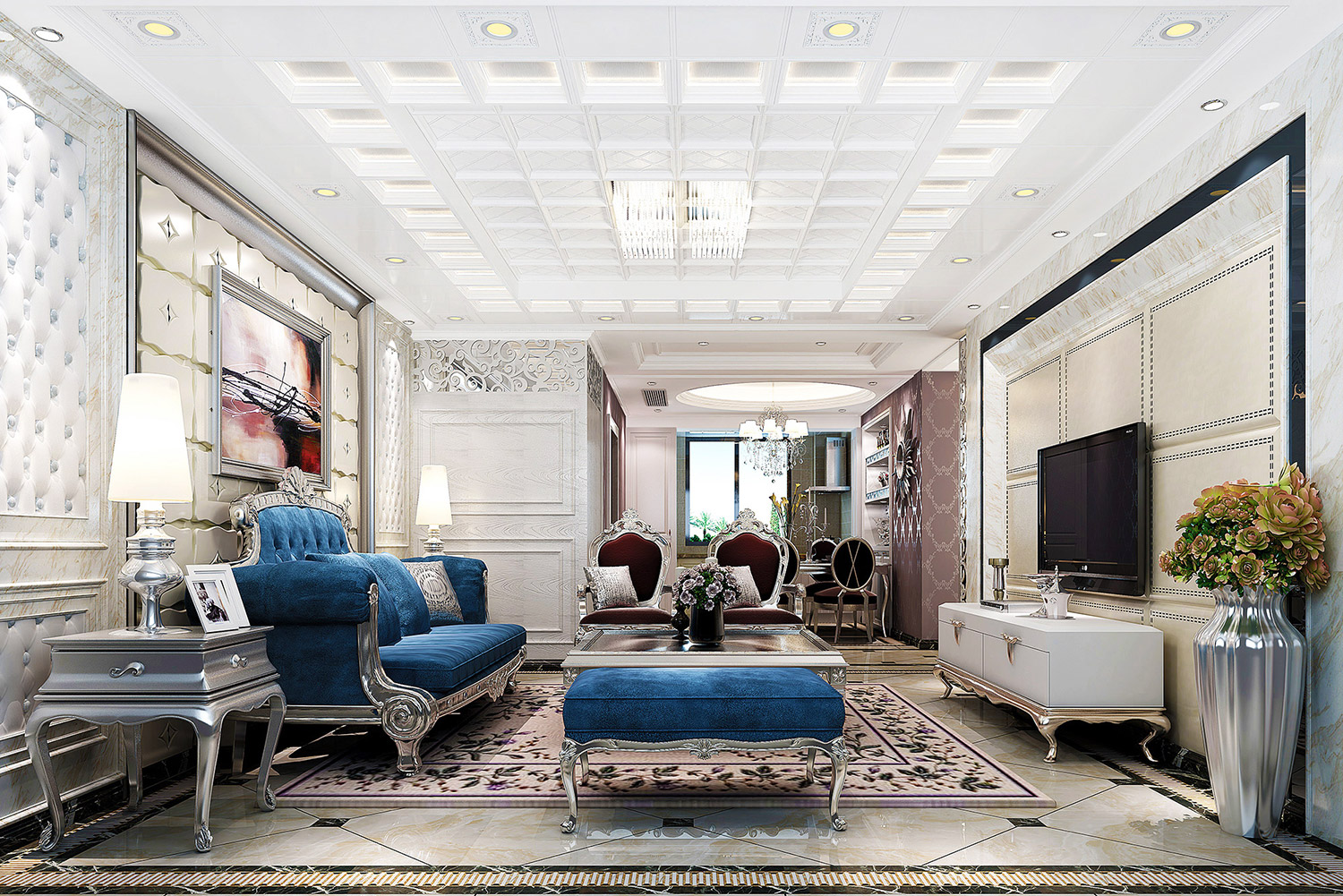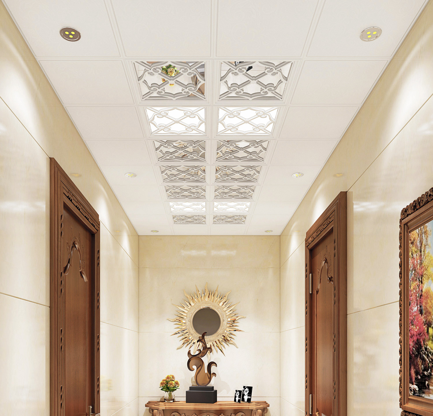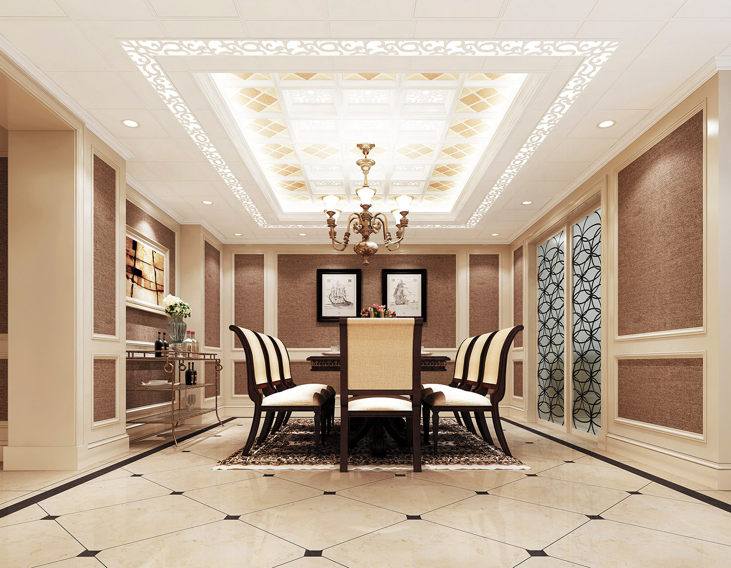 格勒吊顶可以让顶面造型更加精美多样,可以与室内设计整体搭配出独特的效果,增强视觉感染力,使顶面处理富有个性,从而体现自己独特的装饰风格。