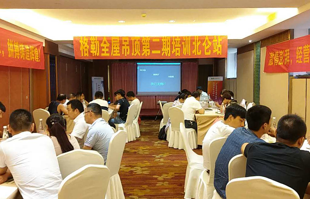 8月15日,为增强区域经销商组建团队的信心,提升对公司产品的了解,扩大品牌区域影响力。格勒全屋吊顶二期培训会--北仑站在天港禧悦酒店召开,各区域经销商与总部营销总监余总、市场总监张总、各区域经理参加了此次会议。