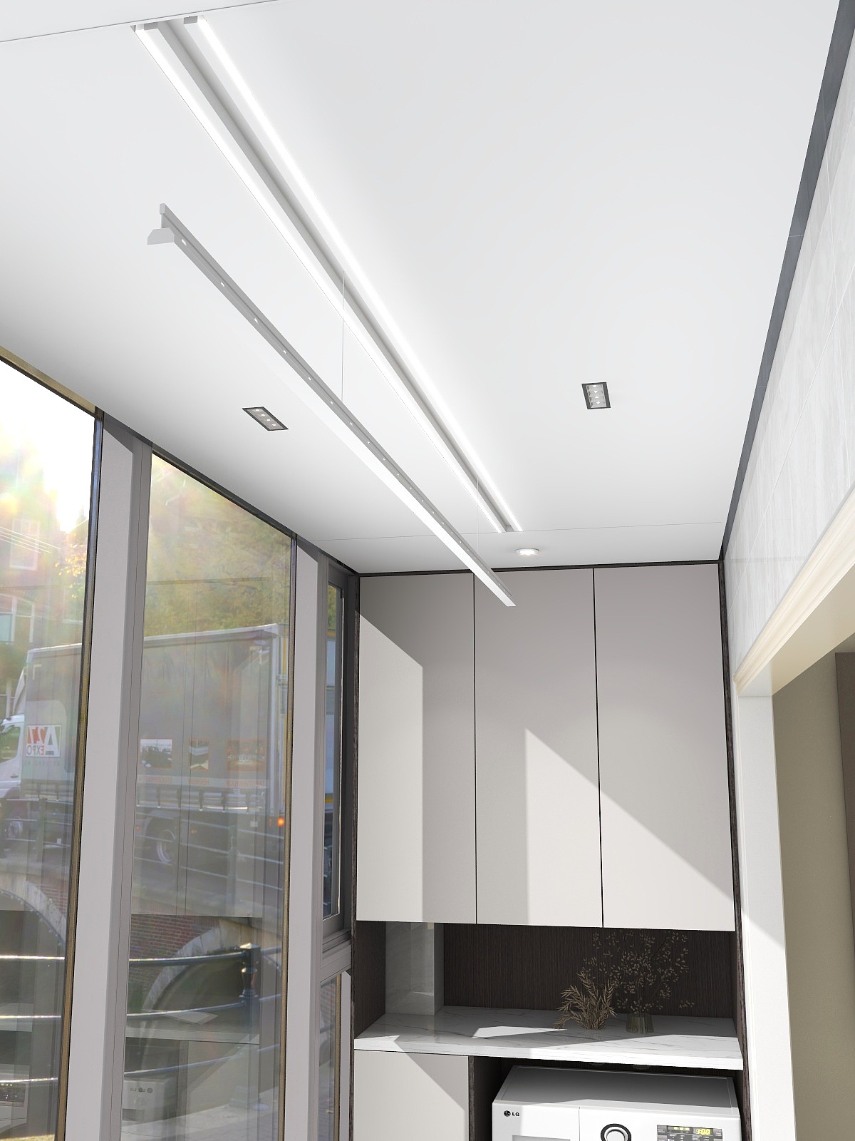 隐藏式晾衣机能完美融入吊顶内,不用时自动收进吊顶,收放自如。